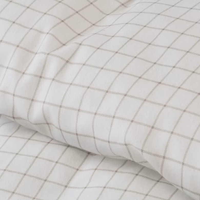 Mjukt flanellpåslakan i off-white – tidlös design som kombinerar komfort och stil.