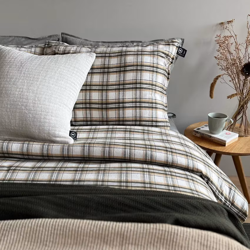 Ge din sovmiljö en varm och ombonad känsla med Fjällnäs påslakanset, tillverkat i 100 % ekologisk bomullsflanell. Den borstade ytan gör tyget extra mjukt och värmande – perfekt för kyliga nätter när du vill njuta av ro och komfort. Det klassiska grönrutiga mönstret är vävt med infärgade garner som behåller sin lyster tvätt efter tvätt. Tack vare OEKO-TEX® Standard 100-certifiering kan du sova gott i vetskap om att textilen är fri från skadliga ämnen.