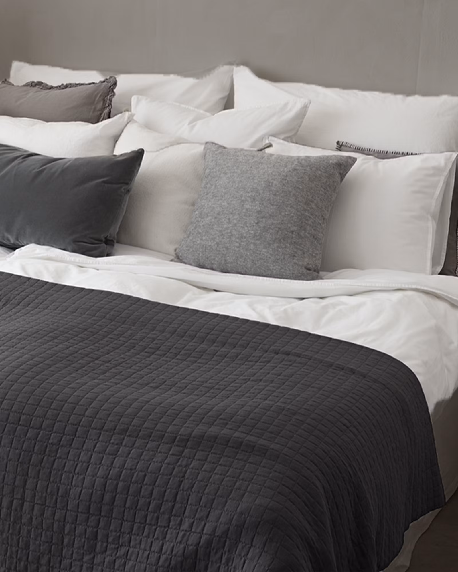 Päiväpeite on saatavana ajattomissa sävyissä, kuten off-white, harmaa ja beige, jotka sopivat moniin sisustustyyleihin.