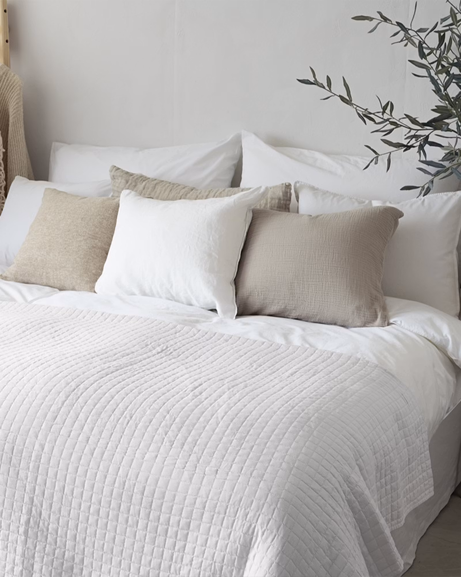 Päiväpeite on saatavana ajattomissa sävyissä, kuten off-white, harmaa ja beige, jotka sopivat moniin sisustustyyleihin.