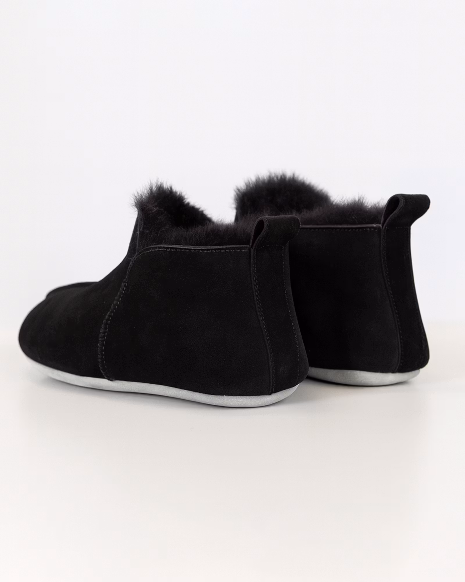 Mukavat ja lämpimät nilkkapituiset kotitohvelit, valmistettu korkealaatuisesta kaksipuolisesta lampaannahasta. Pehmeä mokkapäällinen ja lämmin villavuori pitävät jalat miellyttävän lämpiminä ja tasaisessa lämpötilassa ympäri vuoden. Pehmustettu villasisa­pohja muotoutuu jalan mukaan ja antaa erinomaisen tuen sekä luonnollisen mukavuuden – täydellinen valinta sinulle, joka palelet helposti tai arvostat laadukkaita, lämpimiä tohveleita.