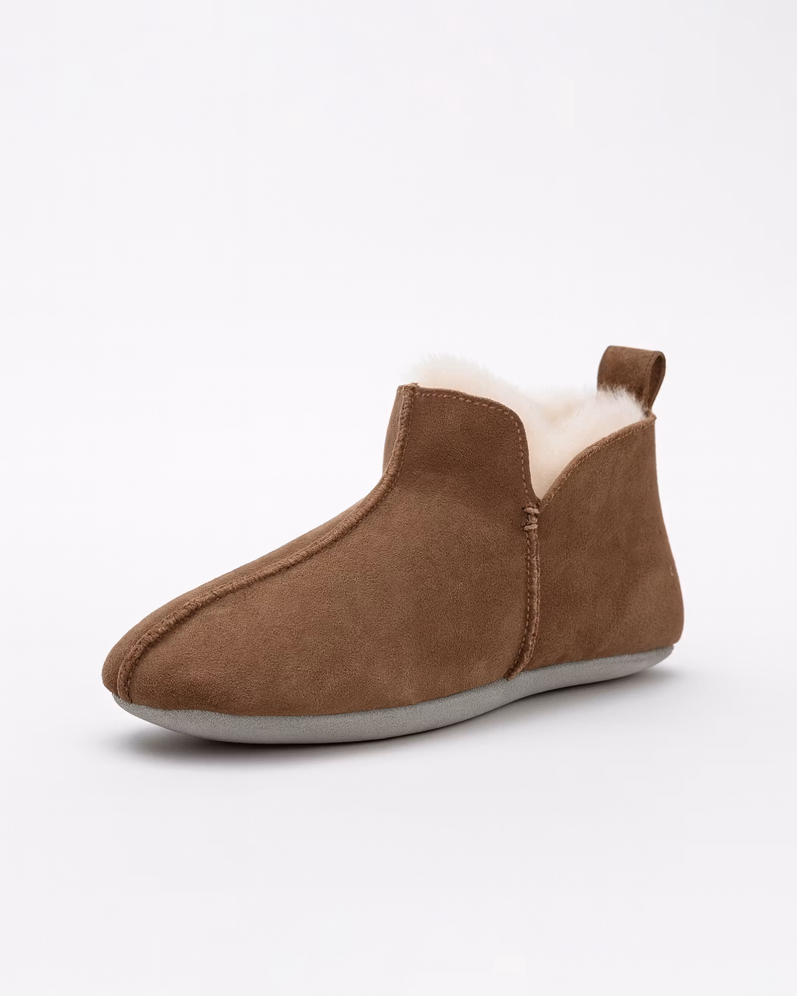 Mukavat ja lämpimät nilkkapituiset kotitohvelit, valmistettu korkealaatuisesta kaksipuolisesta lampaannahasta. Pehmeä mokkapäällinen ja lämmin villavuori pitävät jalat miellyttävän lämpiminä ja tasaisessa lämpötilassa ympäri vuoden. Pehmustettu villasisapohja muotoutuu jalan mukaan ja antaa erinomaisen tuen sekä luonnollisen mukavuuden – täydellinen valinta sinulle, joka palelet helposti tai arvostat laadukkaita, lämpimiä tohveleita.