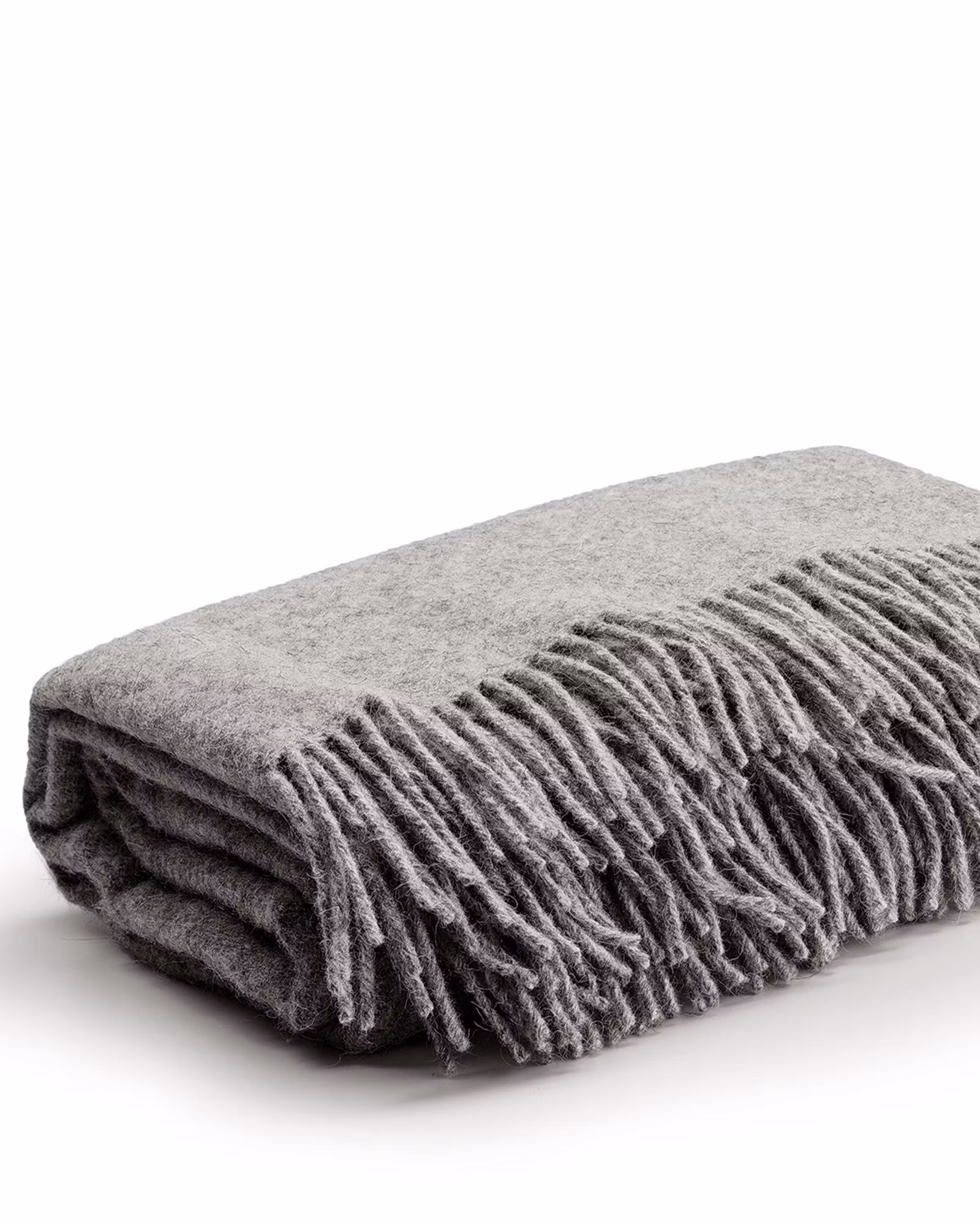 Naturligt vacker och hållbar ullpläd i 100% nyzeeländsk ull, prydd med tvinnade fransar som ger en klassisk och tidlös karaktär. Den mjukt melerade naturgrå tonen smälter fint in i olika inredningsstilar och skapar en varm, harmonisk känsla – perfekt för soffan, sängen eller din favoritfåtölj.
