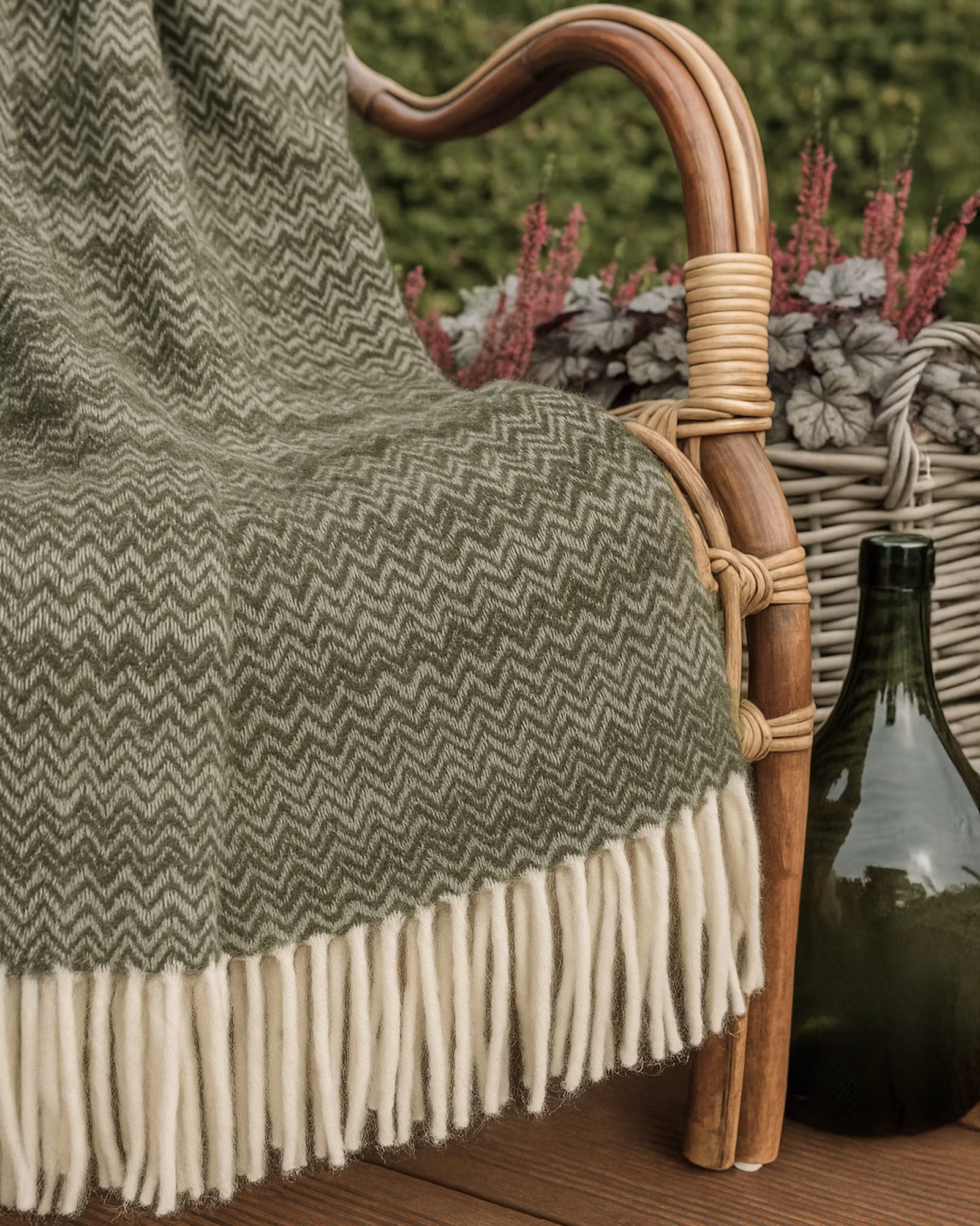 Ullpläd Zick-Zack 130x170 cm – Grön/Vit